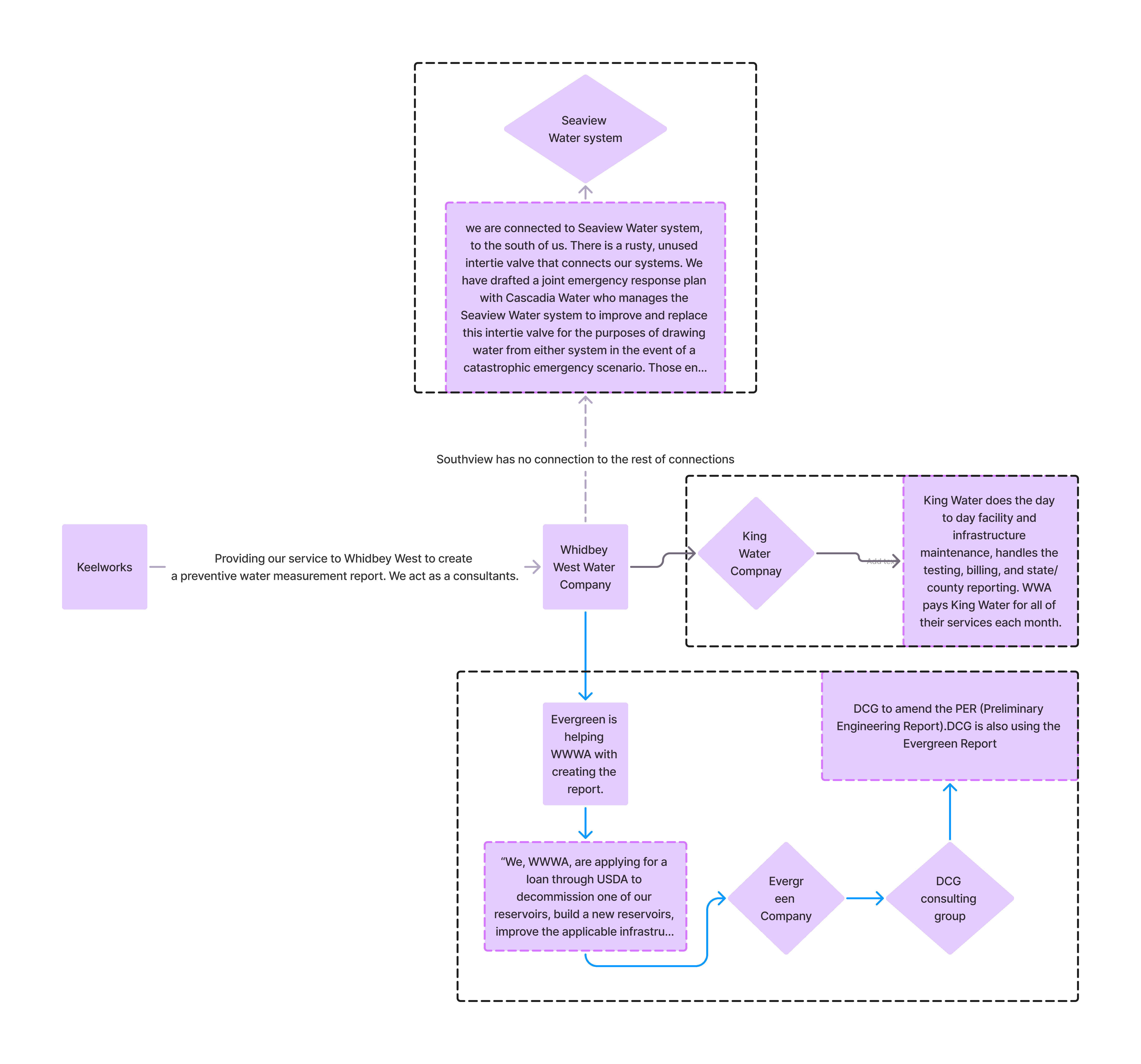 how King water( water maintenance provider) works with the West Whidbey water board.