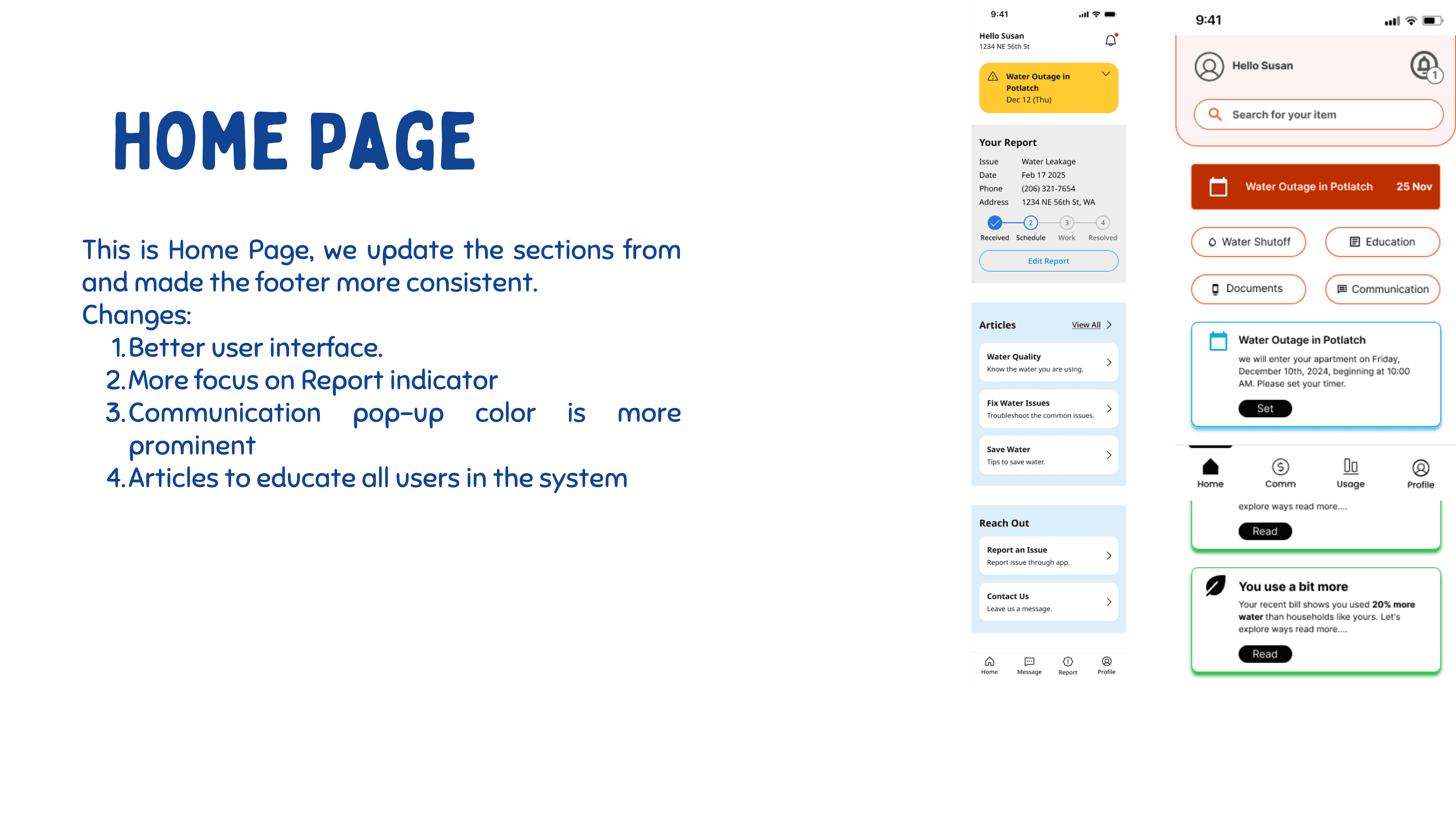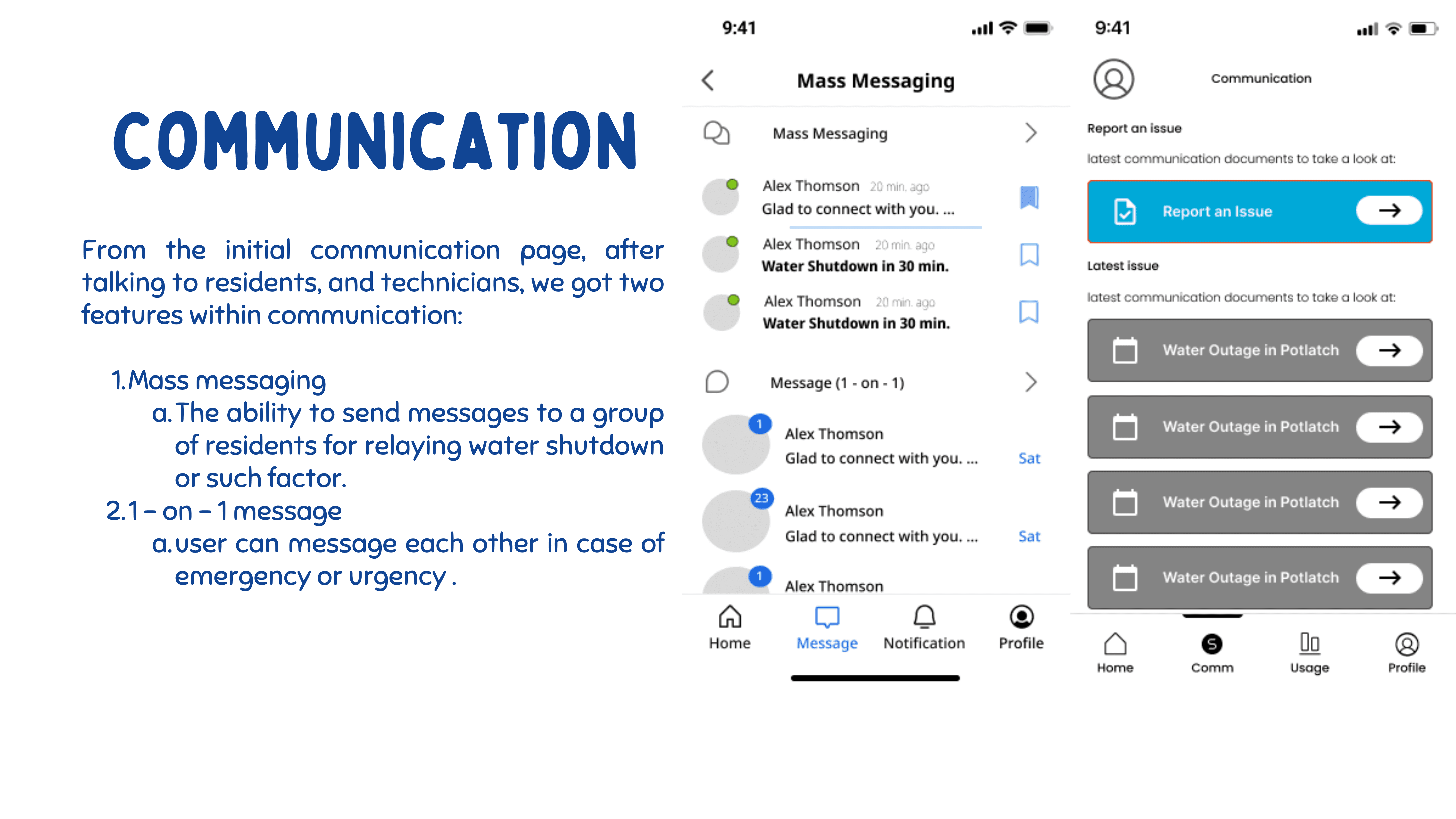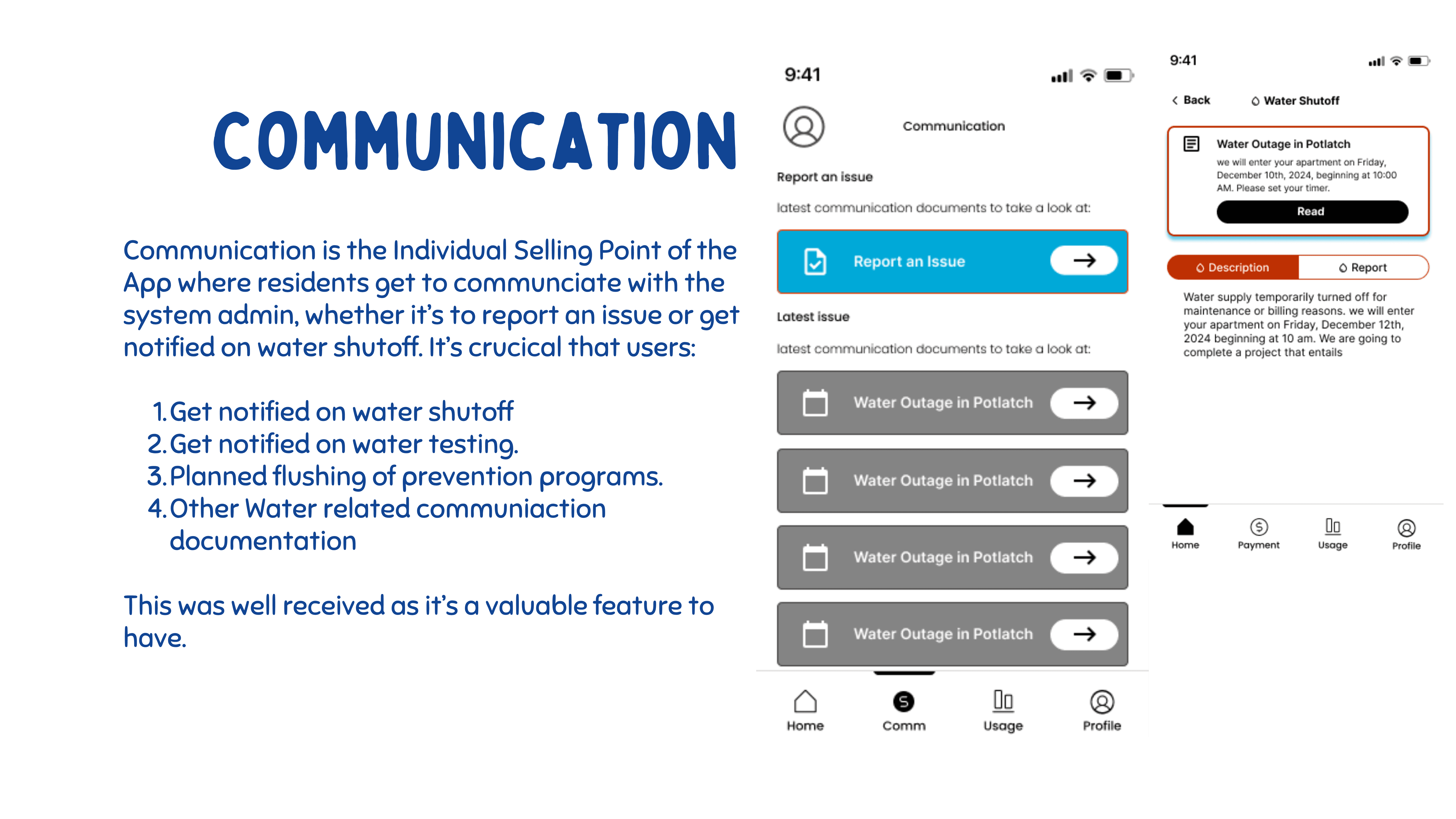 The ability to report issues to technicians and receive issues from residents