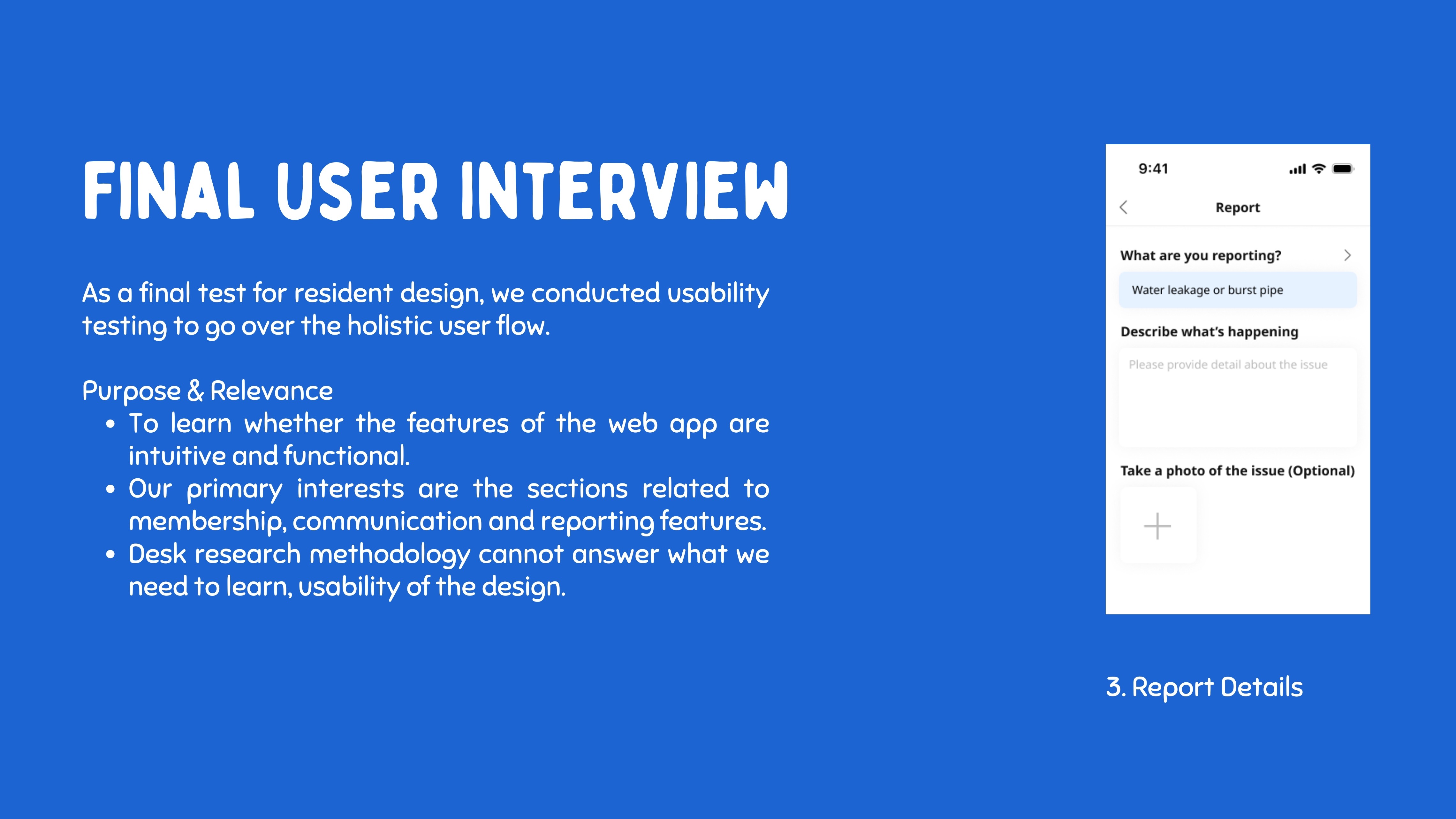 Select issue type, add notes, and upload photos