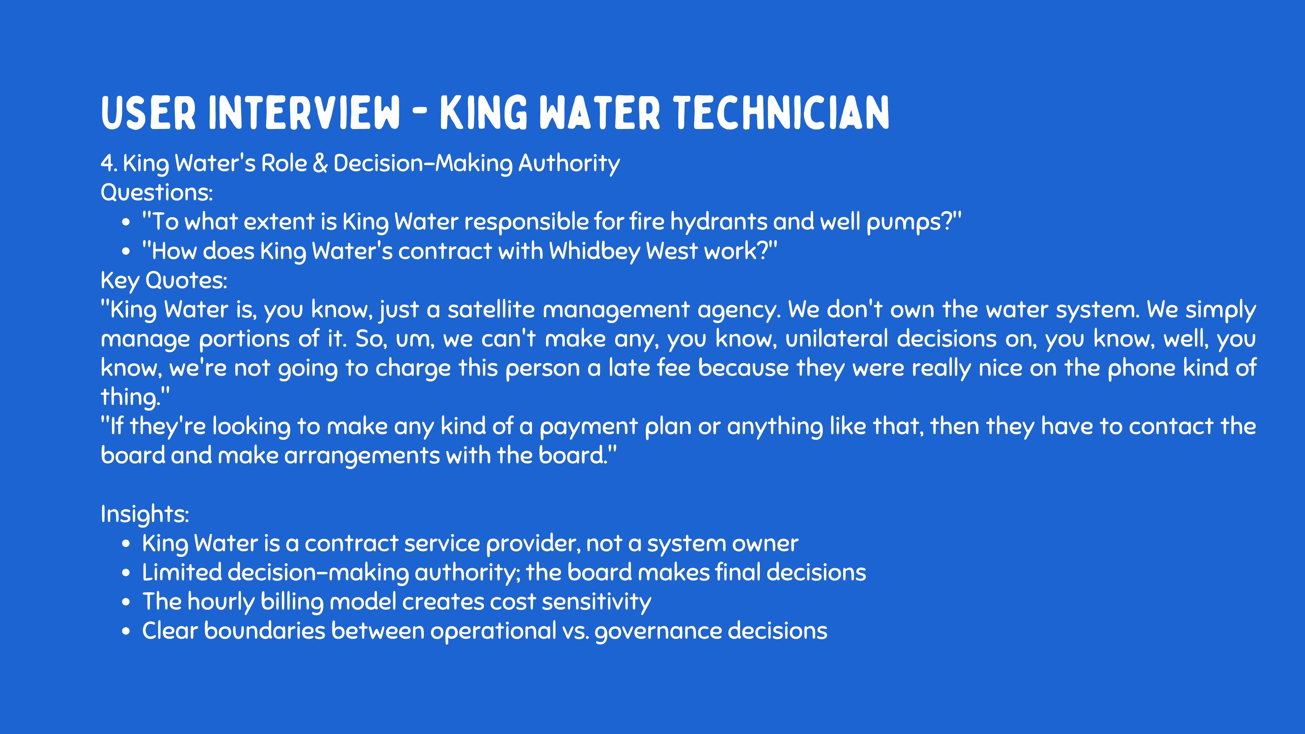 how King water( water maintenance provider) works with the West Whidbey water board.